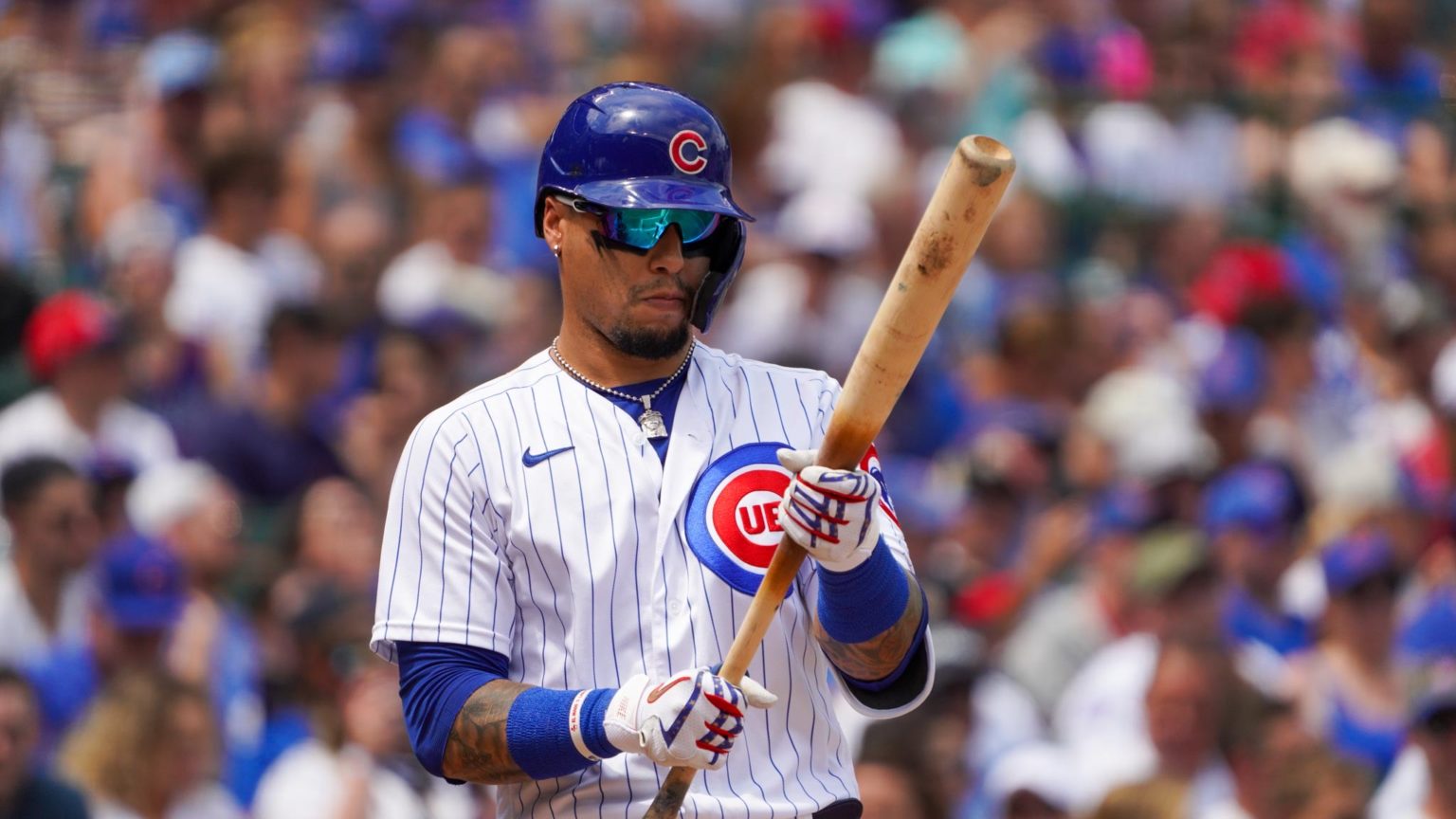Cubs infielder javy báez is mic'd up for batting practice at wrigley field.